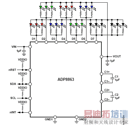 图2.ADP8863典型工作电路框图