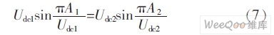 由图2 可知,式(6)若在ω1t1=π/2 处成立,则两级H 桥单元输出的2 次谐波可实现最大程度的相互抵消,由此可得: