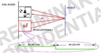 对于接近感测,当内部的红外LED驱动器在用户选定的调制频率下,按照编程设定的时间周期关闭和开启,驱动外部的红外LED时,ADC会将来自光敏二极管阵列的输出信号数字化。由于接近传感器采用了噪声消除机制,可大幅抑制多余的红外噪声,接近感测的数字输出随距离的增加而减小。驱动器的输出电流是用户可选的,最高可达100mA,能够驱动不同类型的红外发射LED。