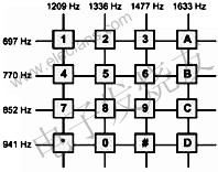 CCITT对DTMF信号规定的指标是,传送/接收率为每秒10个数字,即每个数字100ms。代表数字的音频信号必须持续至少45ms,但不超过55ms。100ms内其他时间为静音,以便区别连续的两个按键信号。