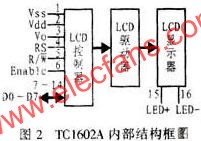 TC1602A的内部结构如图2所示,它主要由DDRAM、CGROM、CGRAM、IR、DR、BF、AC等大规模集成电路组成。