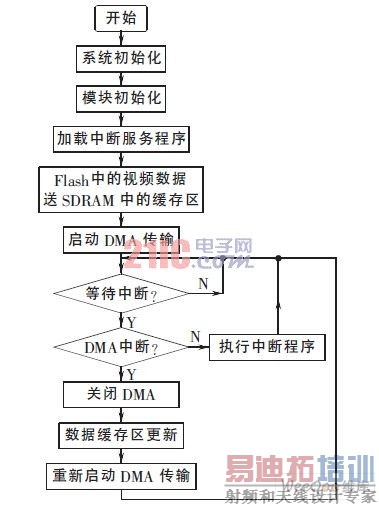 软件设计就是利用SoPC Builder 生成软件文件,用文本编辑器编写汇编语言或C/C++源程序,用GUNPro 将源程序编译成可执行文件, 并通过下载电缆对可执行程序进行调试和运行。软件系统分为两部分:主程序和中断服务程序。主程序主要完成系统的初始化,其主要功能是:对于系统中的每一个微处理器,从设备都生成一个定义该设备地址的头文件,为软件开发创建存储器映射文件。DMA 的操作都通过中断服务程序执行,把需要送出的像素信息排成一行顺序送出形成数据流,借助于Avalon 流模式外设的设计方法, 实现一个Avalon 流模式的LED 控制器。利用DMA 控制器在流模式控制器和SRAM 之间建立一条DMA 传送通道, 让硬件来完成像素信息的自动读取。软件流程如图4 所示,部分内部时序仿真如图5 所示。 [p]