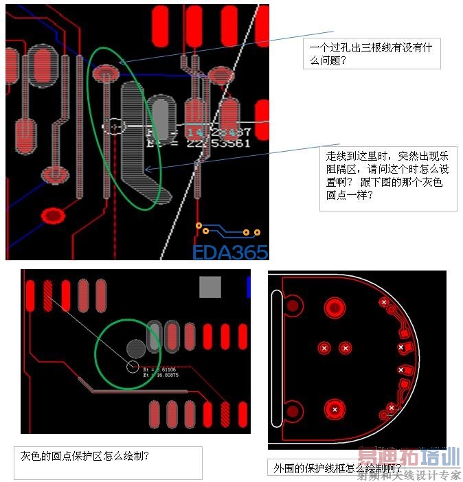 对于那个灰白色的原点,只有在走线经过时就出现了,不走线经过就不会出现,怀疑是DIP封装芯片的保护地带,不是很清楚怎么设置!