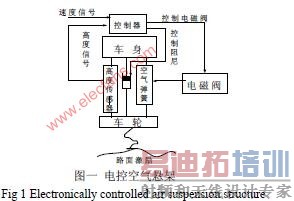 器,执行相应的阻尼力,从而满足汽车行驶平顺性和乘坐舒适型的要求。电控空气悬架组成