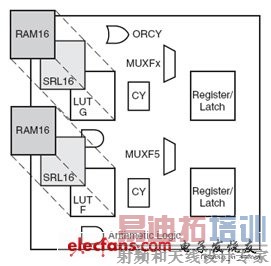 可配置逻辑块是 FPGA 的基本逻辑单元。实际数量和特性会依器件的不同而改变,但是每个 CLB 都包含一个由 4 或 6 个输入、一些选择电路(多路复用器等)和触发器组成的可配置开关矩阵。开关矩阵具有高度的灵活性,经配置可以处理组合型逻辑、移位寄存器或 RAM。 这里给出了一个高层次的 CLB 简介。有关更多架构细节,敬请参阅相应器件的数据手册。