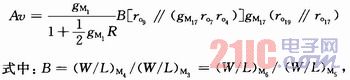 第二级放大电路A2是把差分的双端输出转换成单端输出,这一级决定放大电路的放大倍数,同时VEA要有合适的电压摆幅,在整个工作电压范围内都能驱动负载。根据图2可以近似得出误差放大器的低频增益: