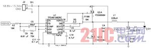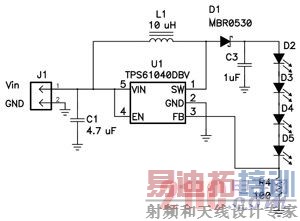 图7 整合式升压LED驱动器将输入电压转换为高电压