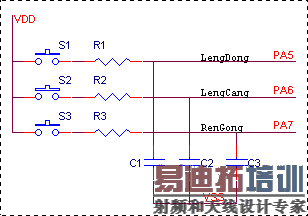 键盘输入电路如图4-3所示,当有键按下时,对应的IO口为拉到高电平,CPU做相应处理。