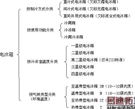 目前,家用电冰箱按箱内冷却方式来分,可分为间冷式和直冷式两种。间冷式电冰箱俗称无霜电冰箱,直冷式电冰箱俗称有霜电冰箱。按照不同的分类可以将电冰箱分为以下几种形式: