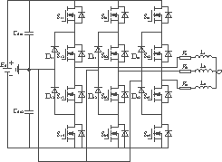 飞跨电容型多电平变换器,由于采用了电容取代箝位二极管,因此,它可以省掉大量的箝位二极管,但是引入了不少电容,对高压系统而言,电容体积大、成本高、封装难。另外这种拓扑结构,输出相同质量波形的时候,开关频率增高,开关损耗增大,效率随之降低。目前,这种拓扑结构还没有达到实用化的地步。