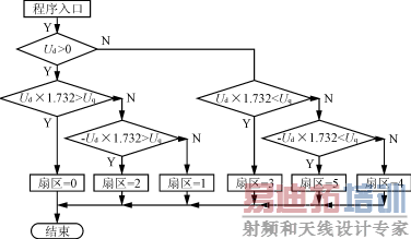 这样在DSP中,先进行判断URf的扇区,计算的流程图如图3所示。