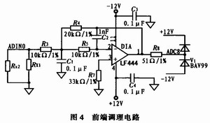AD7865是一种高速、低功耗、四通道同步采样的14位A/D转换芯片,该芯片内部有1个2.4μs的逐次逼近型A/D转换器,4个跟踪/保持放大器,内部2.5V参考电压,同时片上还集成有时钟振荡器和1个高速并行接口。AD7865可大大简化硬件电路设计。AD574转换时间为25μs,而AD7865完成四通道信号的同时转换,则只需要100 μs。 AD7865内部4个采样通道的输入信号是同步采样的,只需发送1个脉冲的采样启动信号,芯片将自动完成采样、逼近和存储数据到片内特定寄存器等工作,单路采样速率350 KSPS,四路同时采集时100 kHz。
