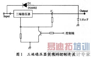 三端稳压器是设计者十分熟悉的常用廉价器件。图1是利用三端稳压器设计的开关电路。从控制端加入的信号决定是否将三端稳压器与地导通。若导通则输出端上电,否则输出端相当于断开。此电路十分简单,也容易调试,且有多种电压的稳压器供选用,适用于直流负载的控制。缺点是稳压器的管压降使输出电压有所降低,不适合电池供电的设备。选用低压差三端稳压器会有所改善。