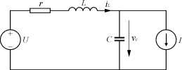 在图2中,电压源 U 代表来自逆变桥的输出电压,电感 L 和电容 C 构成输出 LC 滤波器,电流源I代表负载汲取的电流,与滤波电感 L 串联的电阻 r 是滤波电感的等效串联电阻。由图2可知,在把逆变桥看作一个比例环节的情况下,逆变器的数学模型就是由输出 LC 滤波器构成的二阶系统。在本系统中, L =0.552mH, r =0.3Ω, C =135μF,所以逆变器数学模型为