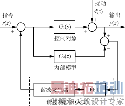 内部模型 G 2( z )就等于 G 1( s )的离散化形式 G 1( z ),它的作用就是模拟控制对象的特性,作为参考信号源。在实际系统中,内部模型作为整个数字控制系统的一部分,由DSP软件算法实现。