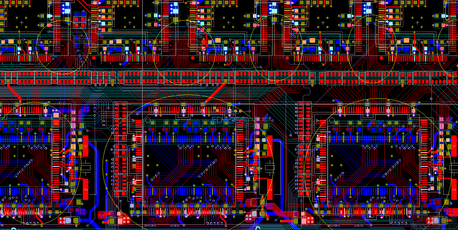 以下画黄圈的都是布好一组,其余都可以拷贝布线,非常方便: