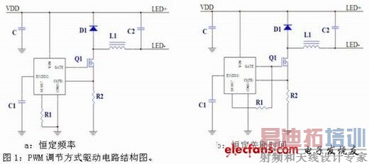 按照PWM调节方式,可以分成恒定频率和恒定关断时间两类(图1)。