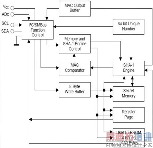 最近,模拟与混合信号IC开发和制造商Maxim公司推介了一系列安全器件和安全单片机。Maxim公司现有三款SHA-1器件:DS28E01-100,DS28CN01和DS2460。这些安全器件的性能示于表1。其中DS28CN01功能框图示于图1。