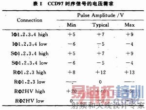 CCD97所需的电压和波形如表1所示。