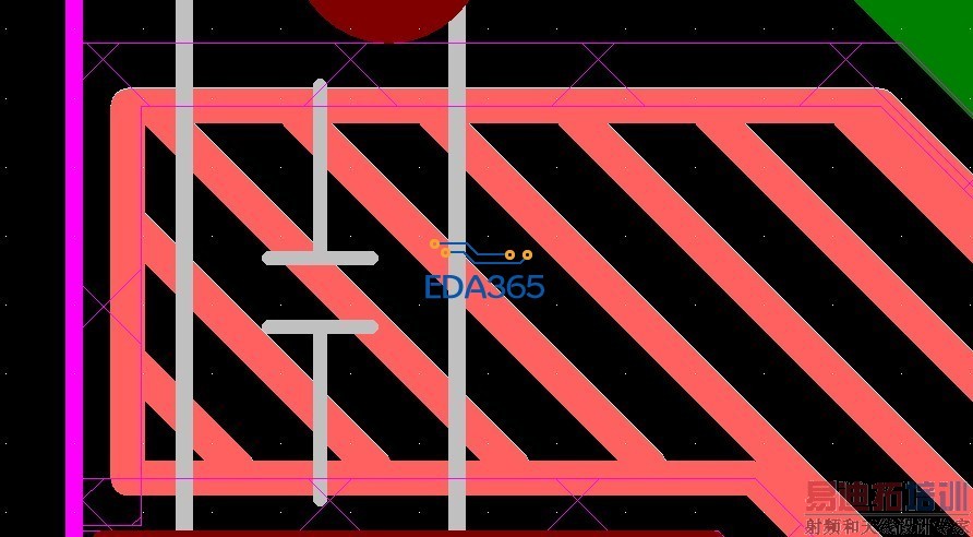 感觉像是斜着挖空的铜片,但是怎样才能挖出这样的效果呢?与keepout的设置有关吗?