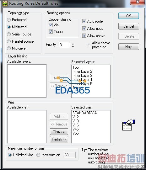 版本为9.3. 如题所说,我已经设置了盲、埋孔,也设置了钻孔对,但在router中布线时,选择任何种盲、埋孔打出来的都是通孔。实在是没办法了,请大侠指教吧!在线等。