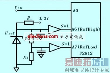 A/D 转换的精度将很大程度上决定称重控制器的精度。本设计采用F2812 自带的模数转换器,这样可以在达到控制器所要求转换精度的基础上简化电路设计。