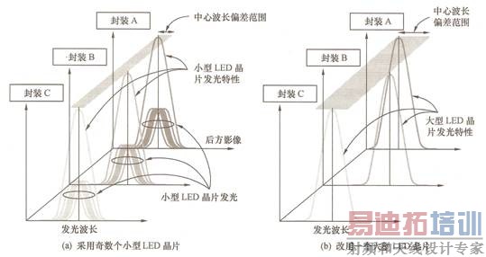 图6 利用多个小型LED芯片的组合提高发光波长均匀性