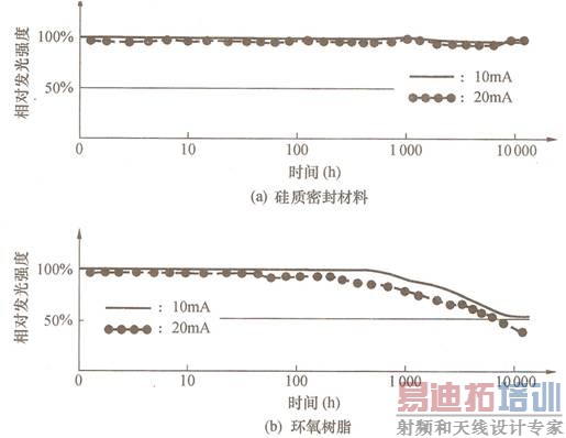 图2 硅质密封材料与环氧树脂对LED光学特性的影响