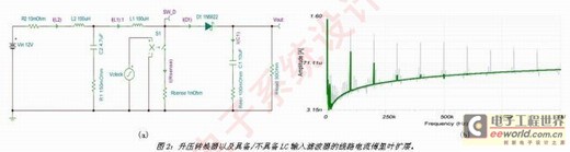 只要加入L2及C2,波形便会变成正弦曲线,而能量会重新调整为相当低的高频率峰值。不过,如果不能正确设计输入滤波器,则会将噪声放大而使得控制回路不稳定。因此,了解滤波器设计的概念,对于优化滤波器回波及成本相当重要。使用SPICE的AC分析是有效了解滤波器行为的工具。