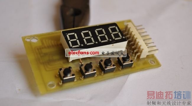 除此之外,还有4个按钮板上,一个7805稳压器和连接器。在4个按键有从左至右以下功能:启动/停止计时器,UP 增加了10多秒,向下 减去10秒,MEM 回忆从记忆的一些预设值。