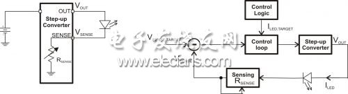 将闪光灯 LED 与一个电流检测电阻串联,然后通过一个升压转换器来驱动,这是一种简单的方法。图 1 描述了这种方法。