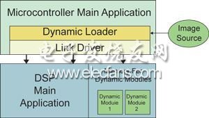 在典型的自加载 DSP 应用中,单独的 DSP 运行于主控制程序中,该程序包括动态加载器库(图 1)。这种方法保存了一些动态图像所用的 DSP 存储器。当应用要求动态模块或动态模块组时,该控制程序将调用动态加载器,指定待加载的模块图像。模块图像可位于闪存或二级存储设备中,系统也可从某些设备中读取图像。加载器为每个模块分配存储器,为所选的存储器调整图像位置,建立到主程序的任何引用,并将调整后的图像复制到动态存储器中。当加载完成后,动态模块则与应用无缝集成,就象它从初始化之后即存在于系统中一样。