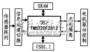 系统基本结构如图l所示,用带有内部A/D转换的。TMS320F2812作为核心,数据传输采用USB接口。该系统具有电气结构简单、成本低、采集处理速度快、数据传输快等优点。
