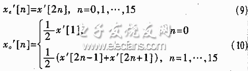 在运用快速算法计算子带分析滤波器时,考虑到DSP芯片的特点,每分解一次,要作一次加(10)式的加法,势必降低精度,另外(11)和(12)式的系数动态范围太大,精度也会受到影响,因此,只分解到16点DCT运算。