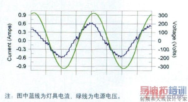 从表3 中可知绝大多数的谐波电流都超过了GB17625.1-2003的规定,表中的“Fail”即表示不合格。此外,该灯的功率因数特别低,只有0.455。