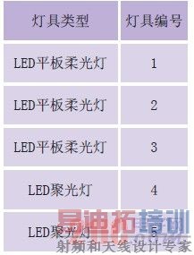 试验用灯具共有2类5个型号。每个型号1个灯具,共5个灯具。详见表1。