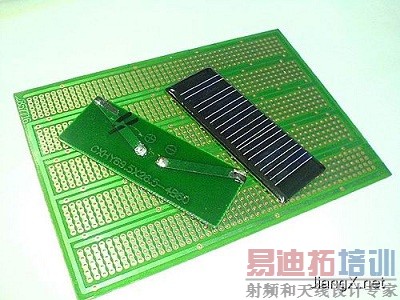 图7是制成后的太阳能供电板,制成后就可以给一些小东西供电了,比如手电筒、收音机之类的。接几个白色高亮LED,就成为一个太阳能LED手电筒,图8是太阳能供电板点亮高亮LED的情景。