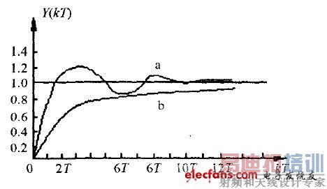 恒偏差法和有效偏差法相类似。有效偏差法又叫逆算法。即当控制量Uk越限时,Uk取边界值Umax或Umin.由该边界值逆算出偏差值Ek'代替原来的偏差值Ek.然而,在恒偏差法中,是用经过衰减后的Ek'去代替Ek.系统在阶跃响应时,实际工作在过阻尼状态,从而减缓了在起、停时对主电路器件的冲击。图3示出两种算法的阶跃输入响应曲线。其中曲线(a)标准PI算法响应曲线、曲线(b)恒偏差法响应曲线。