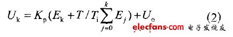 式中Uo-- 初始值;Uk - - 第k次采样点获得的控制量;Ek--第k次采样点获得的偏差量;Ej--第j次采样点的偏差值;k一第k次采样点。