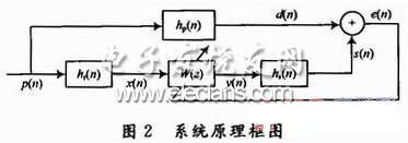 如果不考虑次级声源向初级传感器的声反馈,则图1系统模型图可等效为图2所示的系统原理框图。
