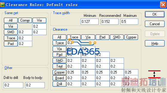 下图PADS Layout 中安全间距设置出问题是哪有问题?