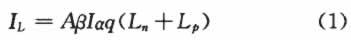式中,A为p-n结面积,q是电子电量,Ln、Lp分别为电子和空穴的扩散长度,J表示以光子数计算的平均光强,α为p-n结材料的吸收系数,β是量子产额,即每吸收一个光子产生的电子一空穴对数。