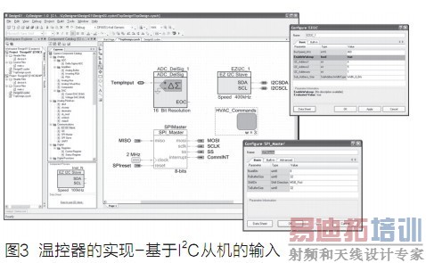 对于第2个应用,即显示卡,将用户输入从离散开关变为I2C基于寄存器的从接口(由主CPU而不是人类直接控制),并将串行LCD显示变为SPI-从控制显示器(使用一系列的寄存器和指令,可能是安装在主计算机外壳前面板上的远程变频显示,未安装到显卡上)。温度输入和HVAC命令保持不变。图3显示了早期实施的变化,假定使用基于8051的赛普拉斯PSoC3设备。