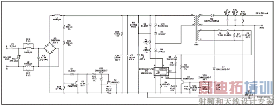 图3。隔离不调光通用输入7W LED驱动器电路图