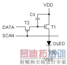 图 1.简易的主动式矩阵 OLED 单一像素控制范例 (ITO 透明导电膜)