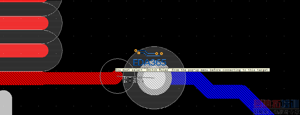 图中过孔和导线是同一网络,但是不能连接,提示必须切换规则。请问如何切换。