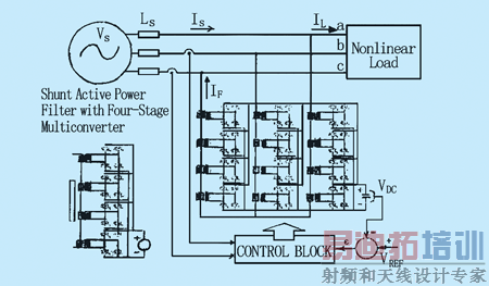 一直处于研究阶段的多级逆变器,最近被用于APF拓扑中,图11为配有三级逆变器的并联APF,今天在大多数的逆变器应用领域,三级逆变器已愈益普及,例如功率因数补偿器。多级变换器的优点是能降低APF产生的谐波含量。因与普通变频器比较,能输出更多(>2级)的电压,这一特点有利于减少滤波器本身产生的谐波。另一优点是能减少半导体电压或电流的定额,以及减少所需的开关频率。