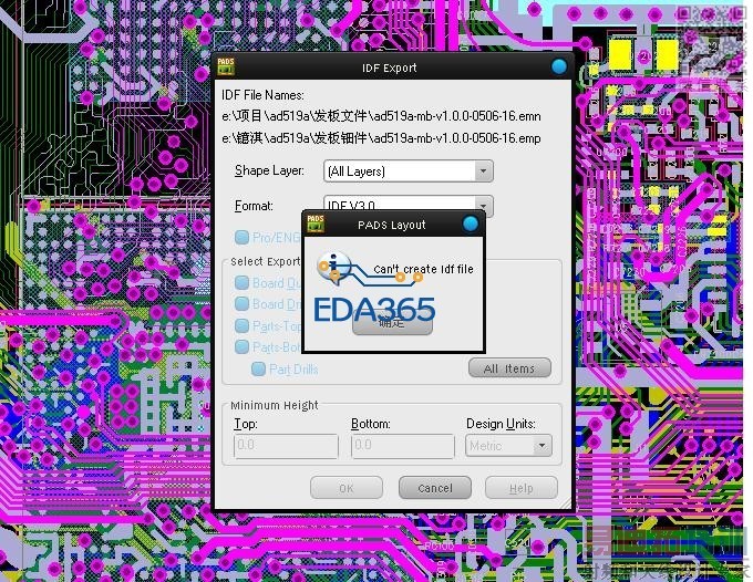 现用的是pads9.4,今天导3D的时候导不出来,如图片提示,麻烦大家帮忙看下,是哪里设置问题 ,谢谢!