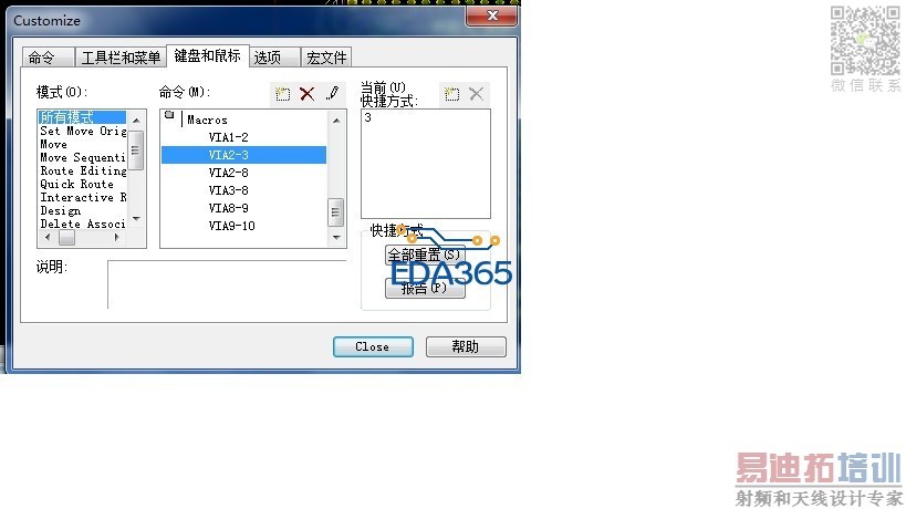3,宏定义过孔的快捷键时,第一次定义完点击close后,发现根本就没有快捷键,第二次再重新输入时,快捷键保存成功