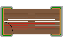 图 3. 导电性树脂层部位(使用绿色突出的部分) TDK 的树脂电极品中,在端子电极中添加有导电性树脂层(图11)。该树脂层位于铜(Cu)与镍(Ni)层之间,通过吸收弯曲与振动所产生的机械应力,防止产生裂纹。部位过度弯曲时,在产生裂纹之前,该设计可使端子电极与树脂分离。